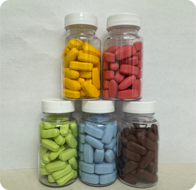 Our advanced coating technology allows for a range of color options to suit your brand’s unique aesthetic. Whether you prefer bold, vibrant hues or subtle pastels, we can customize color-coated tablets to align with your branding and consumer preferences, ensuring a cohesive and appealing product line.